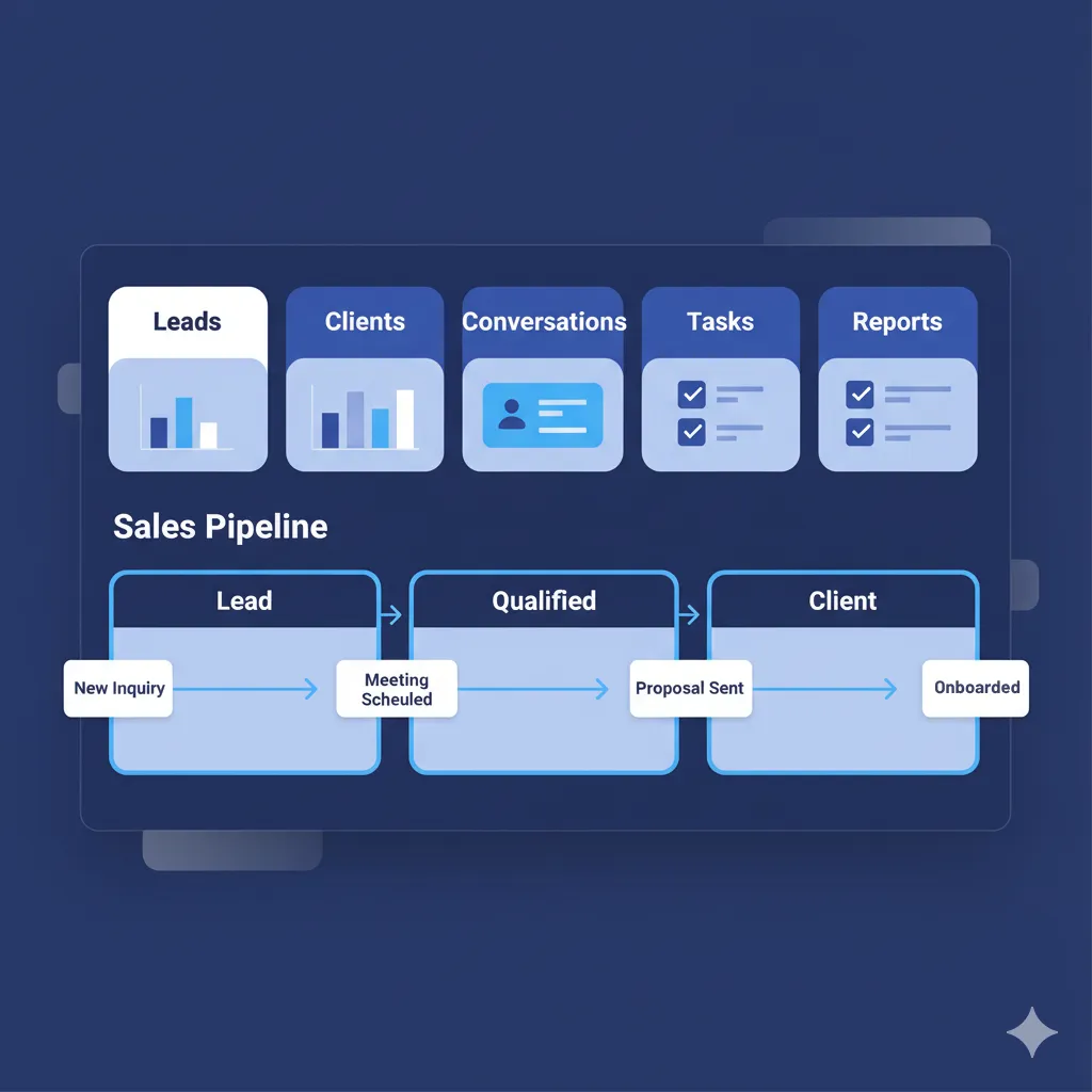 All tools run from a single login. No more juggling apps or passwords — your AI chatbot, voice agent, CRM, and automations are all connected for you.